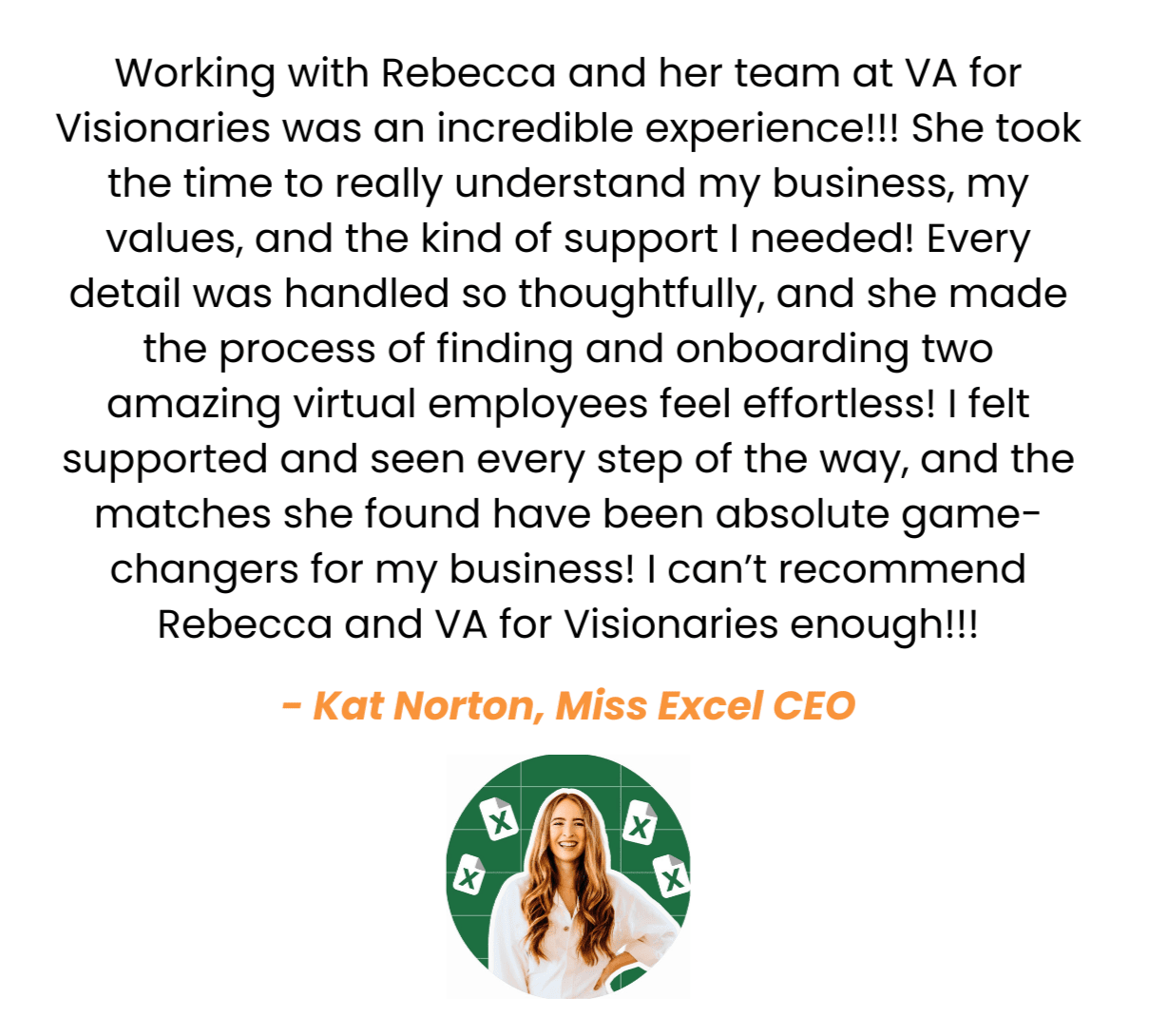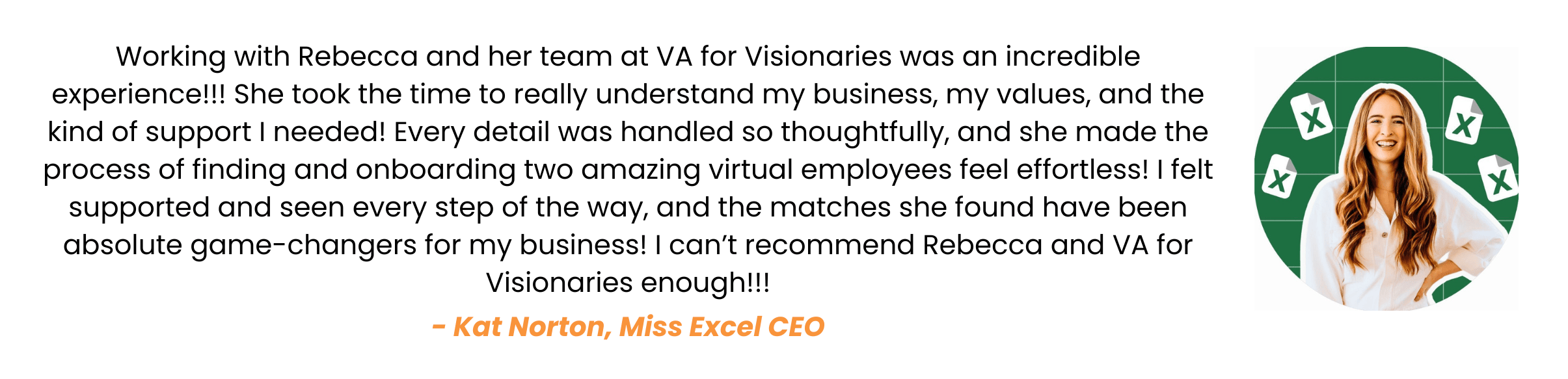 I can’t wait for you to feel the relief of having the right, trusted support, so you can focus on high-level strategy or actually vacation while you’re on vacation :) — while your VA helps your business run like a well-oiled machine.